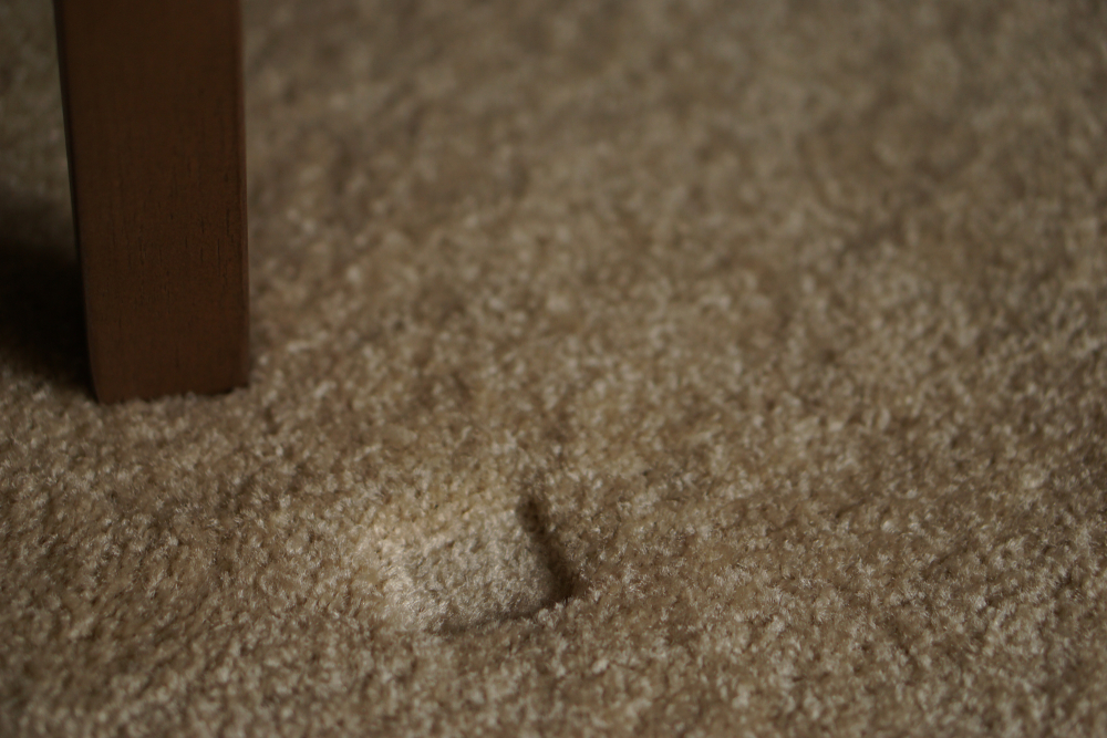 The eliminate even the deepest dents, place a damp towel or cloth directly on it. Set iron on the steam setting or on medium heat, and run it over the towel for a minute – but don’t let the iron directly touch the carpet as it could burn the carpet. Then, fluff it up or vacuum over the spot to get it back into its normal shape.